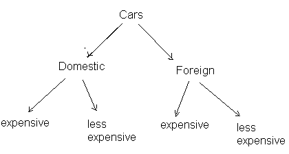 foreign", "less expensive foreign". A hierarchy tree may be created expressing